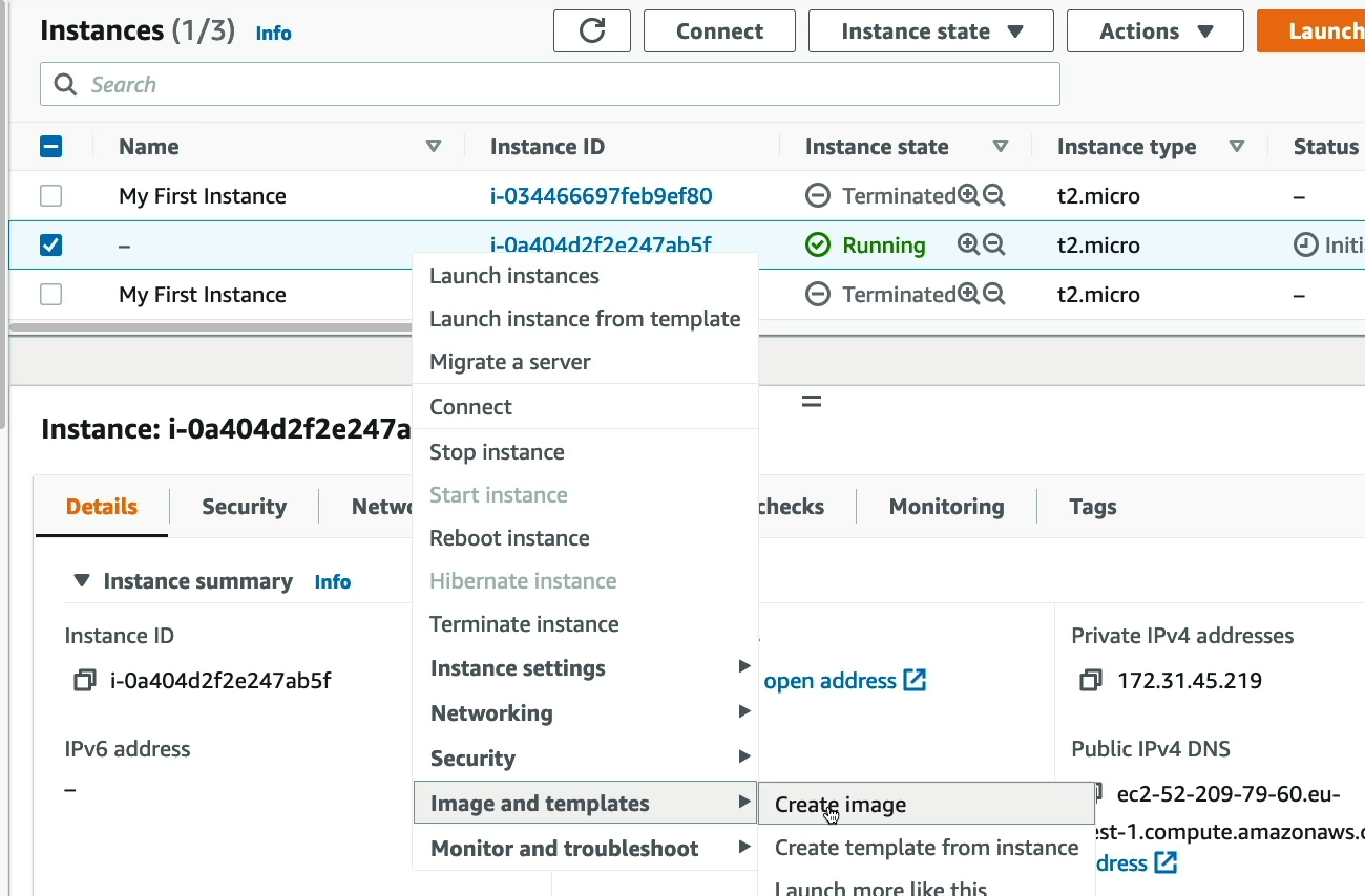 - Create AMI from the instance → Stored in Amazon S3 (managed by AWS).