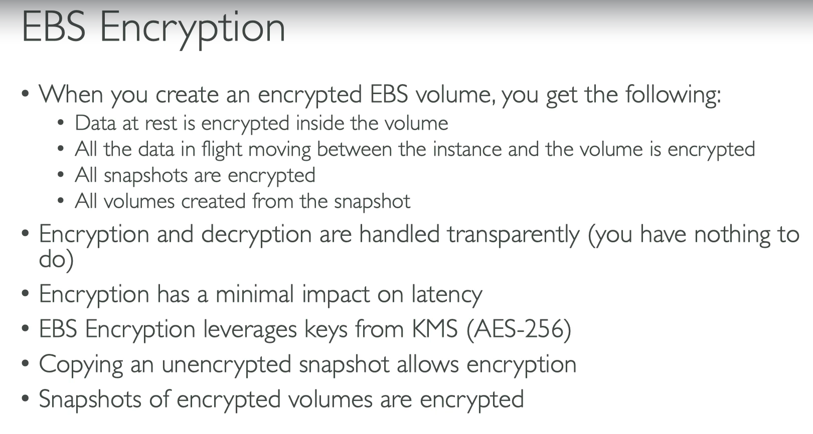 - Survives instance stop/start (unlike instance store).